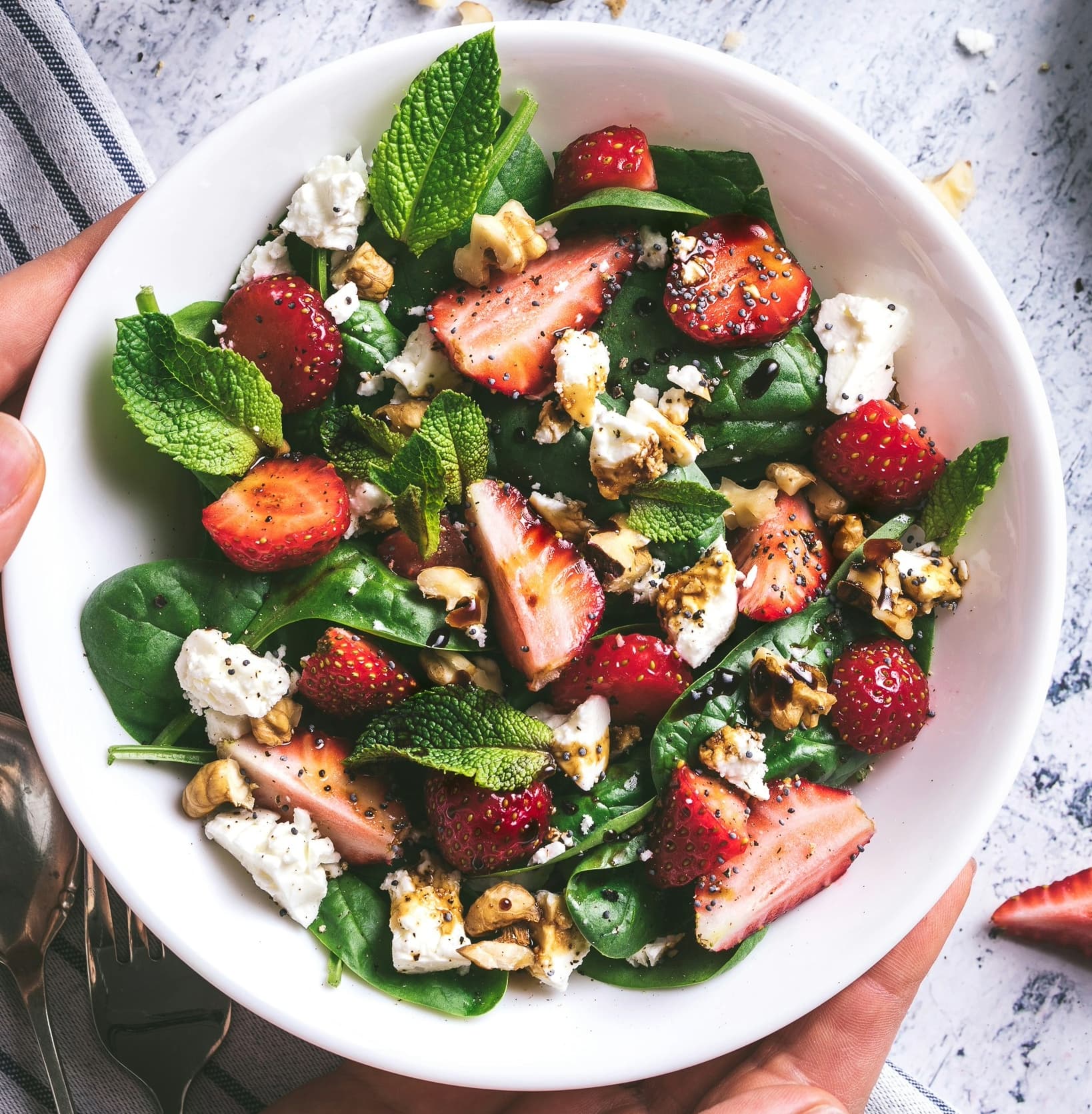 Fresh strawberries, baby arugula, and pecans. Served with strawberry